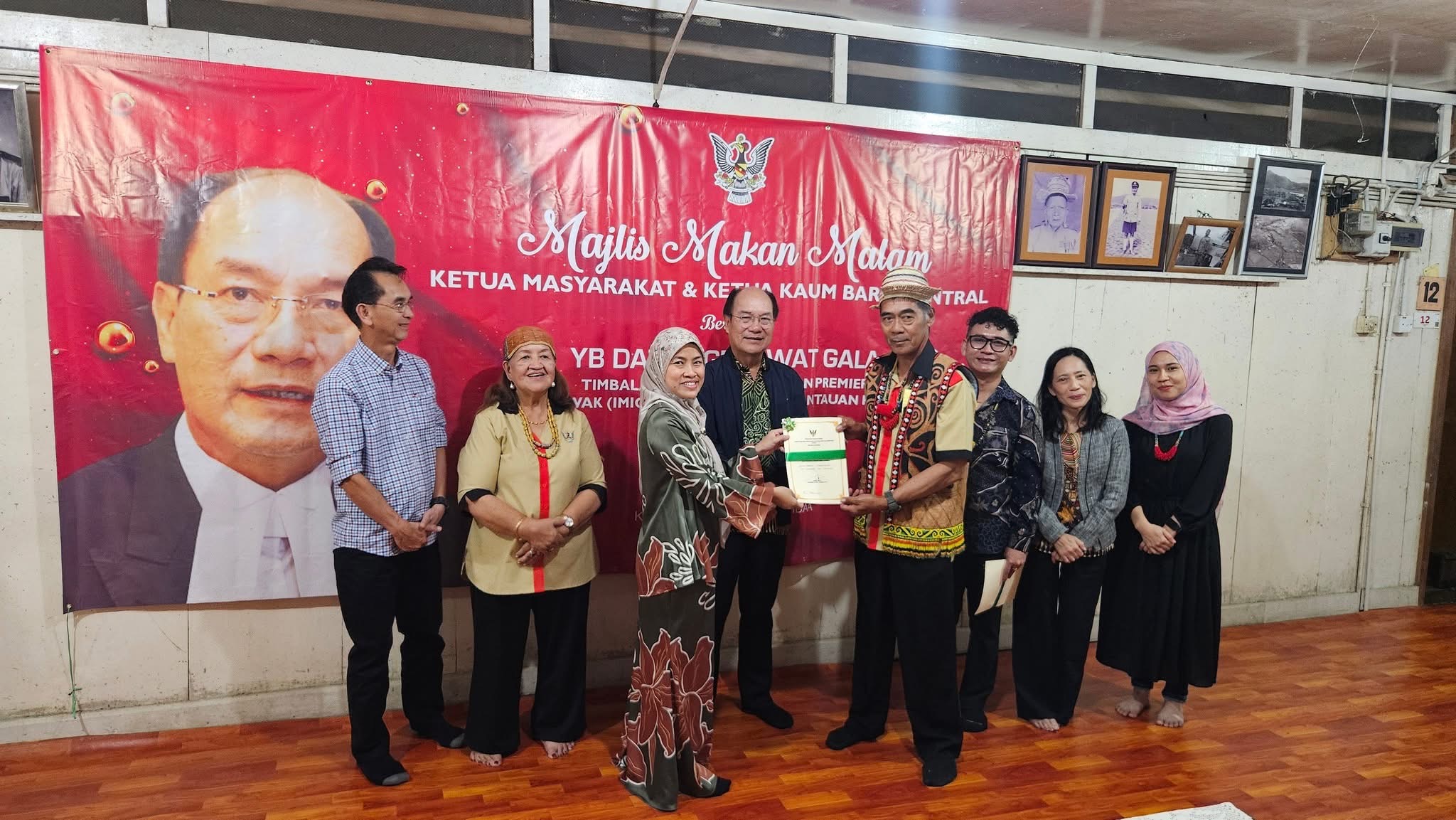 BARIO: Timbalan Menteri di Jabatan Premier Sarawak (Buruh, Imigresen dan Pemantauan Projek) Datuk Gerawat Gala telah menyaksikan penyerahan Sijil Lantikan Ketua Masyarakat Dan Ketua Kaum (KMKK) oleh Pegawai Daerah Miri Siti Rohanie kepada satu Ketua Masyarakat dan tiga Ketua Kaum baharu dalam Majlis Makan Malam Perlantikan Ketua Masyarakat dan Ketua Kaum (KMKK) Bario Sentral pada Jumaat.