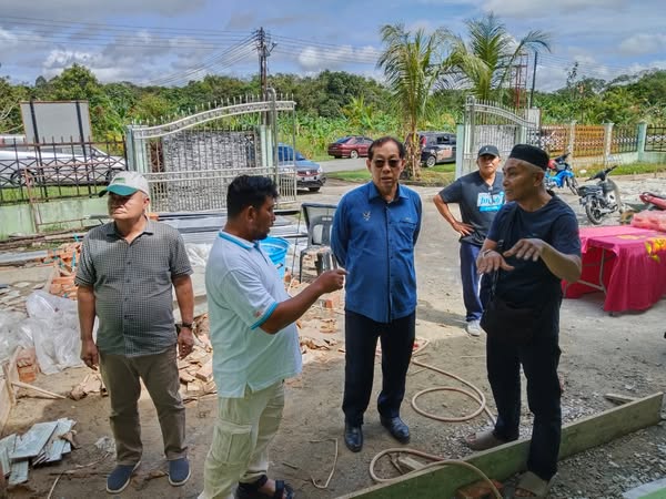 Pejalai iya terus ngagai taba projek nyeleti Balai Mayuhguna Surau Darul Hasanah di Kampung Harmoni, Sri Aman, ti benung diseleti bala pengereja nentuka projek tembu chun ba timpuh.