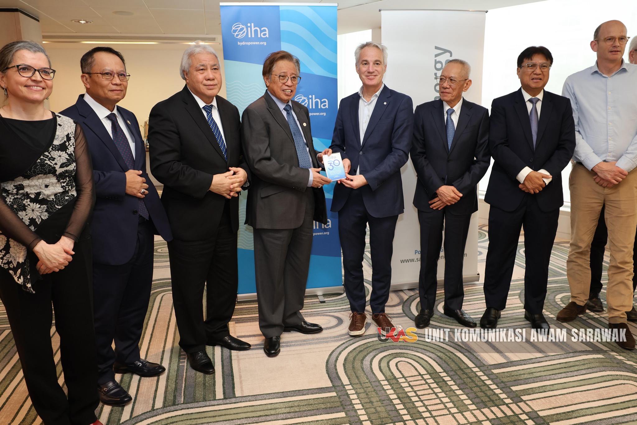 LONDON: Premier Sarawak, Datuk Patinggi Tan Sri (Dr) Abang Abdul Rahman Zohari Tun Datuk Abang Openg begulai enggau deligit perintah udah betemu enggau Gerempung Kuasa Hidro Antarabansa (IHA) enggau Gempung Ulih Dikena Baru Global (GRA) ba sebuah hotel tebilang ditu, kena Hari Empat.