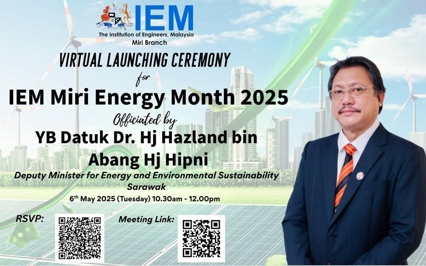 MIRI: Institut Jurutera Malaysia (IEM) Cawangan Miri telah melancarkan Bulan Tenaga 2025 secara dalam talian pada Selasa bertemakan ‘Powering the Future’.