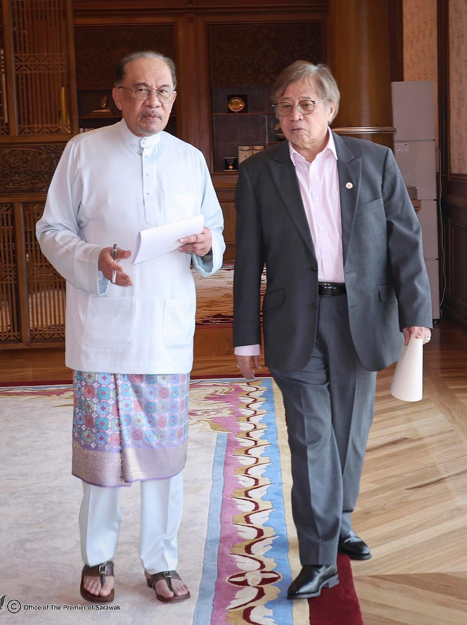 KUALA LUMPUR: Perdana Menteri, Dato’ Seri Anwar Ibrahim mempengerusikan pertemuan dengan Premier Sarawak, Datuk Patinggi Tan Sri (Dr) Abang Abdul Rahman Zohari Tun Datuk Abang Openg, bersama kepimpinan tertinggi PETRONAS dan PETROS di Perdana Putra, Putrajaya, semalam.