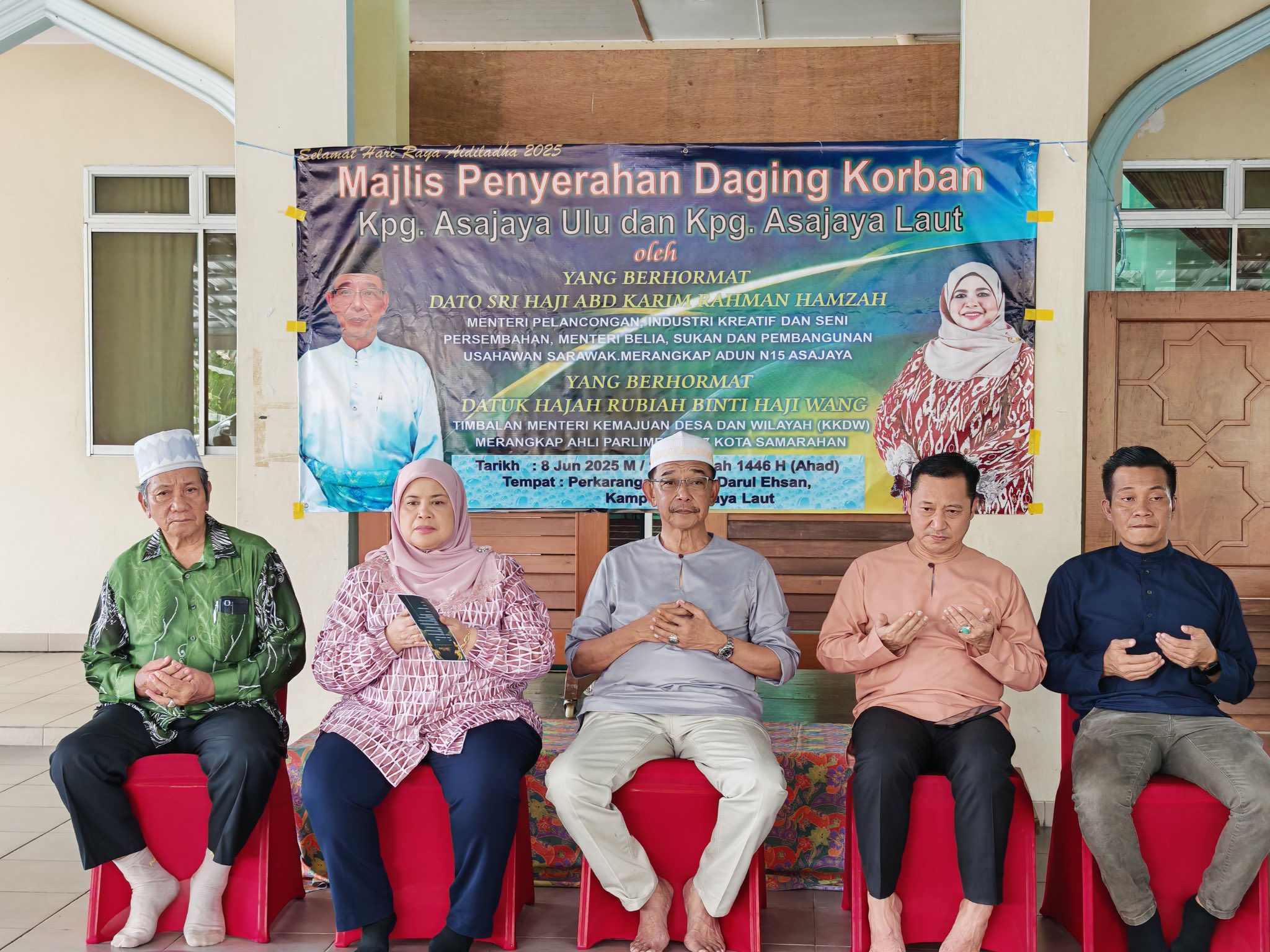 Menteri Belia, Sukan dan Pembangunan Usahawan Sarawak merangkap Ahli Dewan Undangan Negeri (ADUN) Asajaya, Dato Sri Abdul Karim Rahman Hamzah turut hadir menyantuni 69 orang asnaf dari Kampung Asajaya Ulu dan Kampung Asajaya Laut serta mengagihkan sebanyak 200 kilogram daging korban kepada mereka.