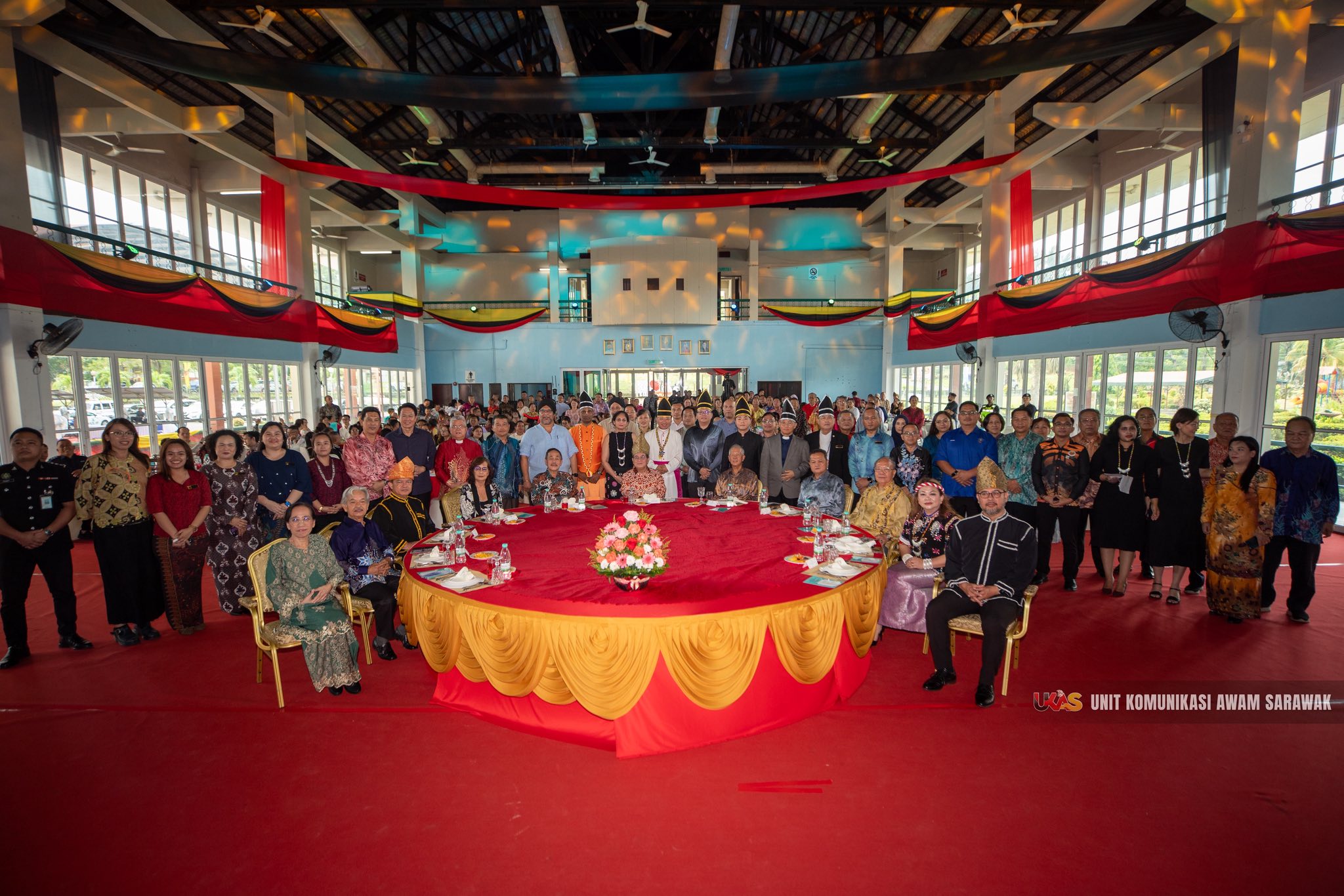 Majlis yang disambut secara tahunan ini turut dihadiri Menteri Pendidikan, Inovasi dan Pembangunan Bakat Sarawak Dato Sri Roland Sagah Wee Inn merangkap Menteri Bertanggungjawab Sambutan Ulang Tahun Hari Keputeraan Rasmi Kebawah Duli Yang Maha Mulia Seri Paduka Baginda Yang di-Pertuan Agong (Ke-17) Peringkat Sarawak Tahun 2025, Timbalan Menteri Pelancongan, Industri Kreatif dan Seni Persembahan Sarawak (Pelancongan), Datuk Sebastian Ting Chiew Yew, Ahli Parlimen Lawas, Dato Henry Sum Agong, Ahli Dewan Undangan Negeri Batu Danau, Dato Paulus Palu Gumbang, Pesuruhjaya Polis Sarawak, Dato Mancha Ata, Pengarah UNIFOR, Dato Georgina Apphia Ngau serta tetamu yang lain.-EDISI UKAS