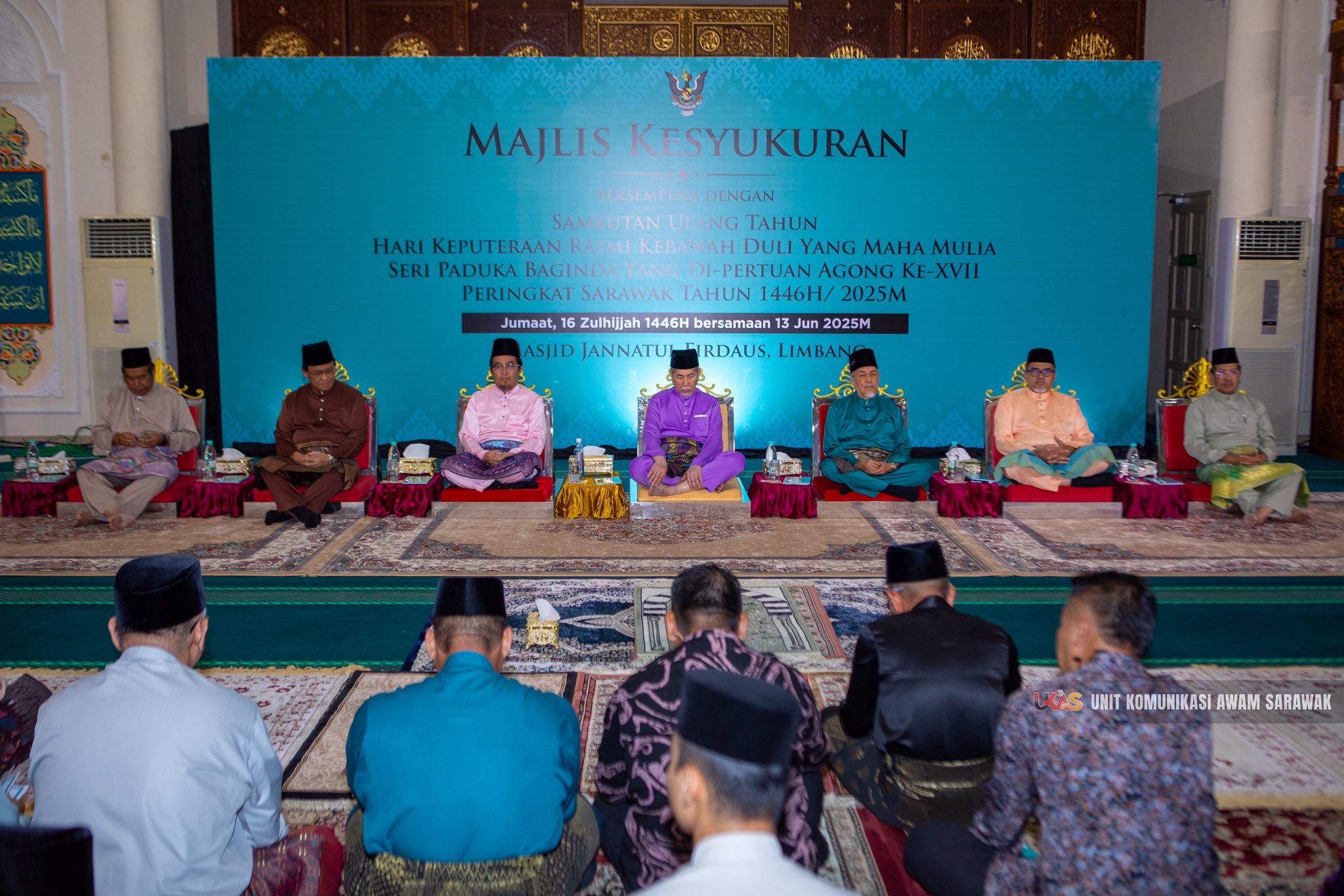 LIMBANG: Pengerami Sembiang Makai Selamat Hari Pengada Kebawah Duli Yang Maha Mulia Seri Paduka Baginda Yang di-Pertuan Agong ke-17 diatur enggau penuh berekat ba Masjid Jannatul Firdaus, ditu Hari Lima.