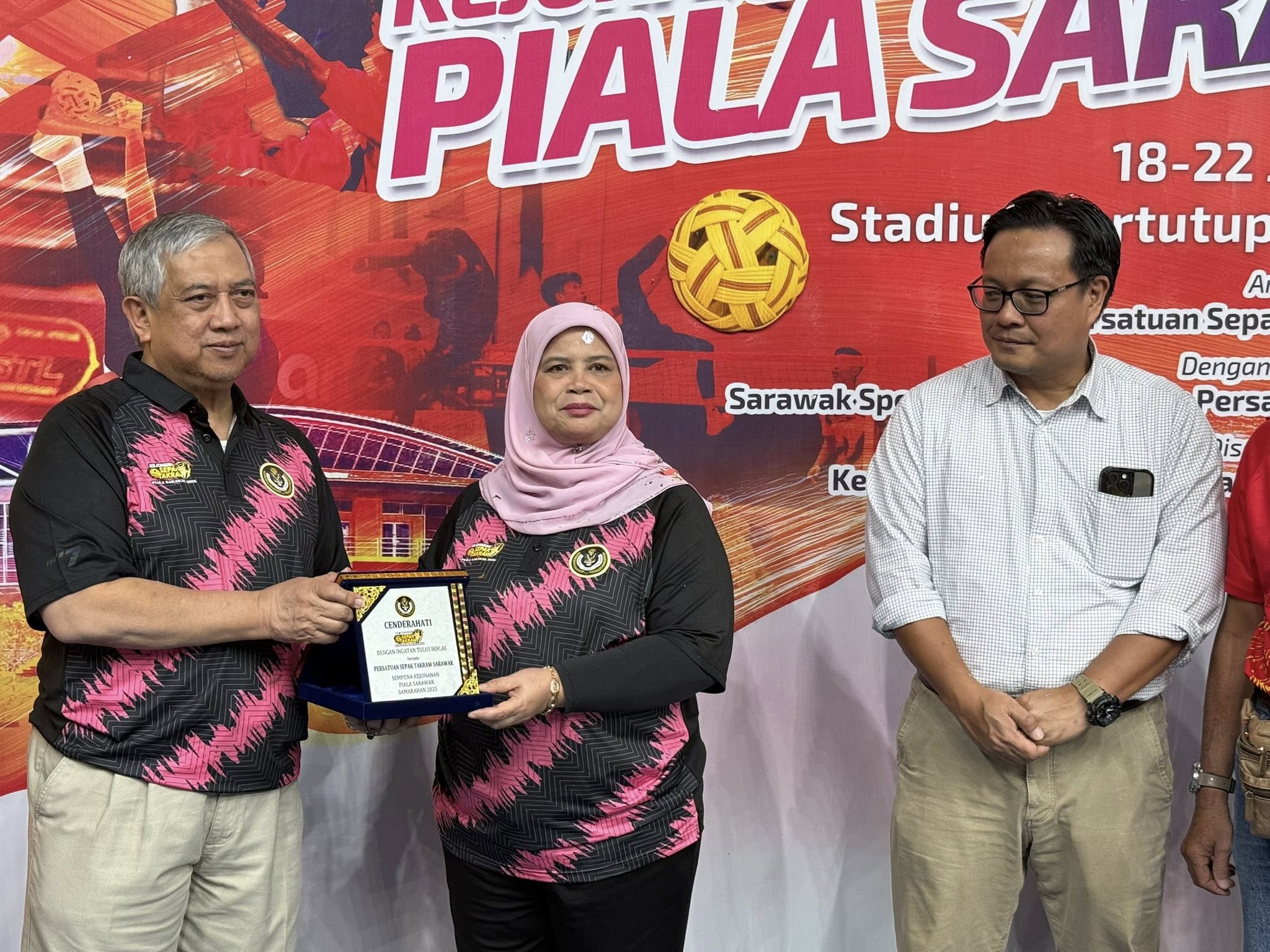 Majlis turut dihadiri Presiden Persatuan Sepak Takraw Sarawak (PSS), Dato Ismail Abang Saufi, Residen Bahagian Samarahan, Mohamad Irwan Bahari Bujang; Pegawai Daerah Samarahan, Ahmad Abdul Razak serta Timbalan Presiden PSS, Mohammad Nizam Wang.