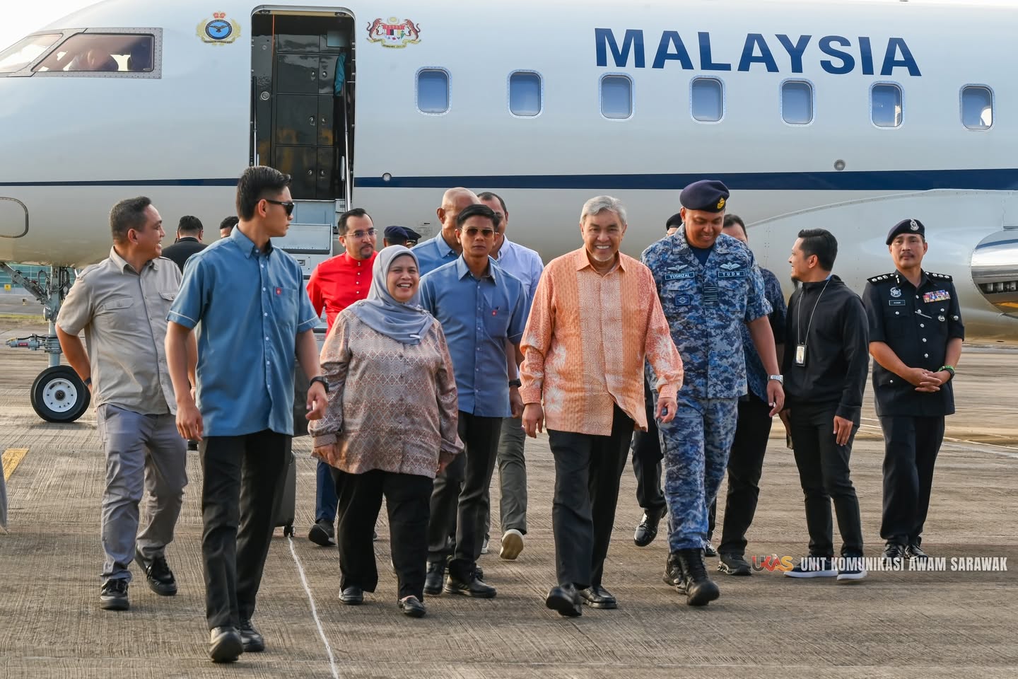 古晋:副首相拿督巴丁宜阿末扎希周六抵达顺利抵达古晋皇家空军基地,展开为期两天的官访行程。