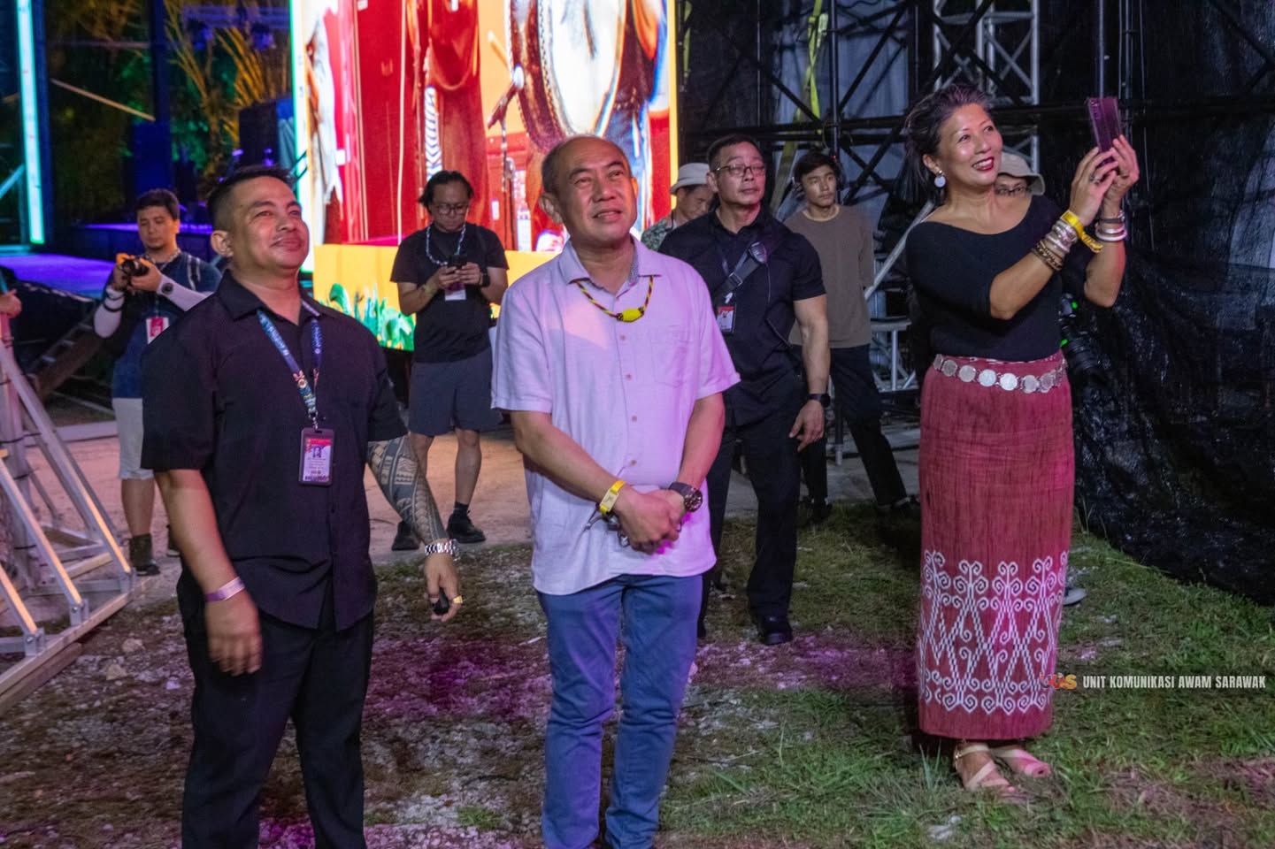 在热烈又充满多元文化色彩的氛围中,殿下伉俪欣赏了来自本地与国际艺人的精彩演出,其中包括马来西亚的Naungan乐队、日本的Seppuku Pistols、夏威夷的Kulaiwi、砂拉越的Mathew Ngau Jau与Lan E Tuyang、马来西亚的Buddha Beat ft Sinaran Collective、纽西兰的Rob Ruha、菲律宾的Kuntaw Mindanao,以及压轴亮相、来自美国的传奇组合——Earth, Wind and Fire Experience by Al McKay,将现场气氛推向最高潮。
