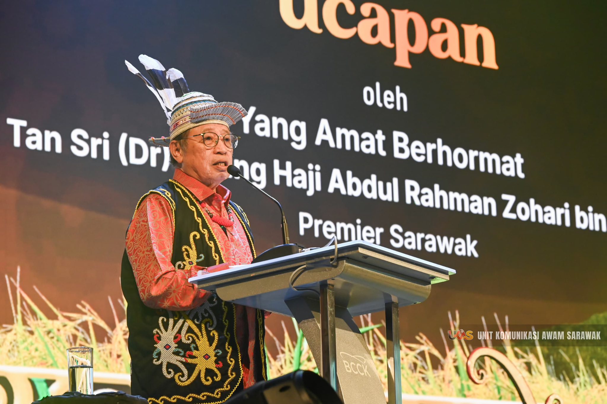 Turut hadir, Timbalan Perdana Menteri Datuk Patinggi Dr Ahmad Zahid Hamidi, Yang di-Pertua Dewan Negara Senator Dato Awang Bemee Awang Ali Basah, Menteri Besar Selangor Dato Seri Amirudin Shari, Timbalan Premier Sarawak merangkap Pengerusi Jawatankuasa Induk Sambutan Majlis Gawai Dayak Peringkat Sarawak 2025 Datuk Amar Douglas Uggah Embas, Timbalan-Timbalan Premier Sarawak Datuk Amar Awang Tengah Ali Hasan dan Datuk Amar Profesor Dr Sim Kui Hian, Speaker Dewan Undangan Negeri (DUN) Sarawak Tan Sri Datuk Amar Mohamad Asfia Awang Nasar, Menteri-Menteri Kabinet Persekutuan dan Sarawak, Timbalan Menteri di Jabatan Premier Sarawak (Buruh, Imigresen dan Pemantauan Projek Sarawak) merangkap Pengerusi Jawatankuasa Pengelola Sambutan Majlis Gawai Dayak Peringkat Sarawak 2025 Datuk Gerawat Gala, Timbalan-Timbalan Menteri Kabinet Sarawak, Ketua-Ketua Jabatan, serta kenamaan yang lain. -EDISI UKAS