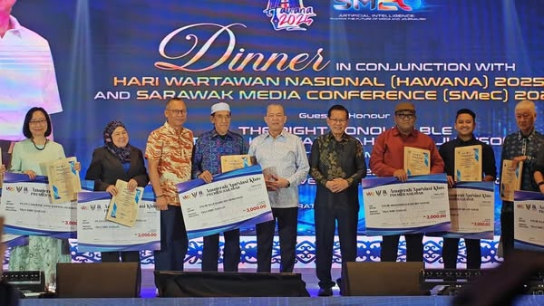Iya nyebut jaku nya ba Pengerami Makai Lemai Serimbai Hari Pemberita Nasional (HAWANA) 2025 Renggat Sarawak enggau Konferen Media Sarawak (SMeC) 2025 ditu, kena Hari Tiga.