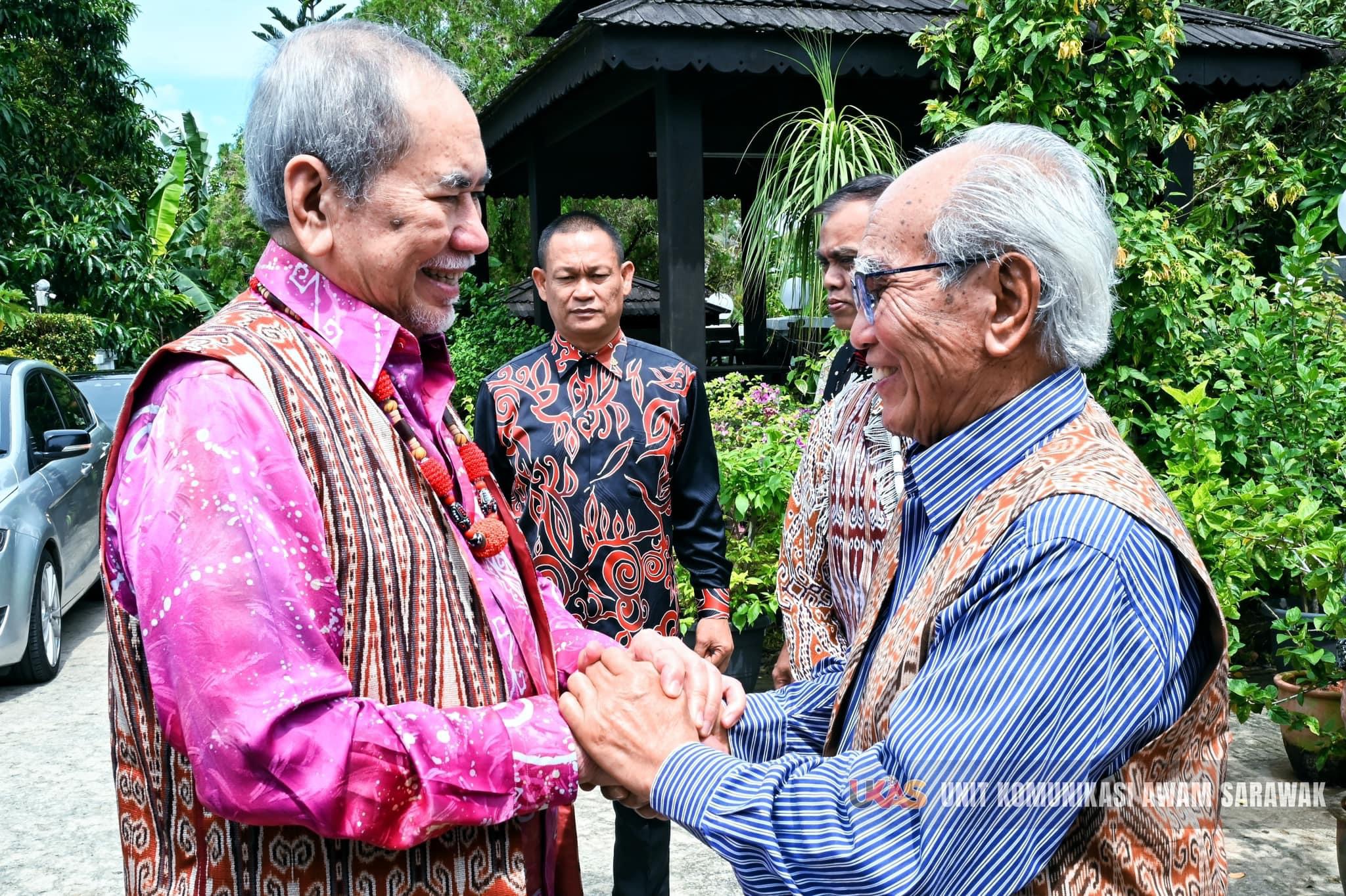 KUCHING: Rumah terbuka Gawai bekas Timbalan Ketua Menteri Sarawak, Datuk Patinggi Tan Sri (Dr) Alfred Jabu Numpang di Jalan Wan Alwi, di sini diserikan dengan kehadiran Yang di-Pertua Negeri Sarawak, Tun Pehin Sri Dr. Wan Junaidi Tuanku Jaafar pada Sabtu.