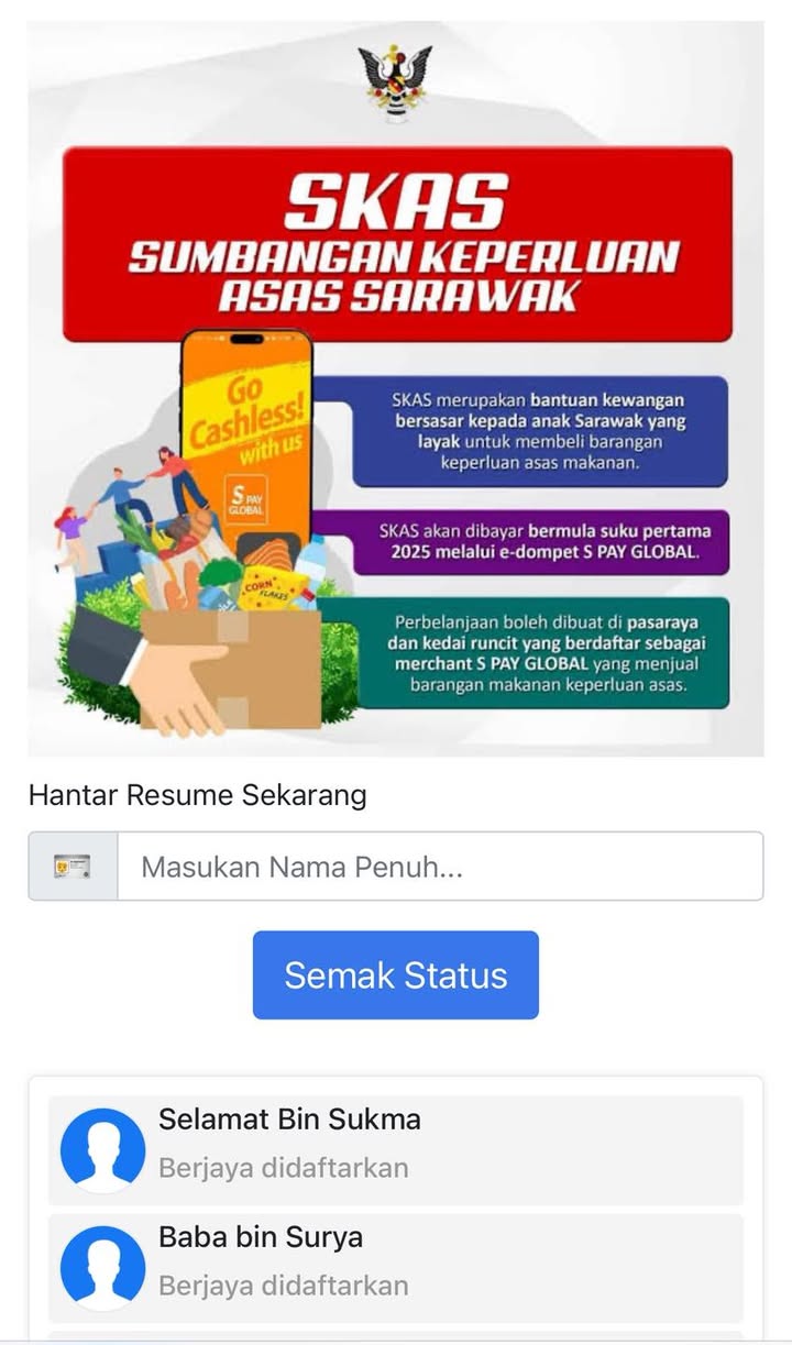 所有有关砂拉越基本需求援助计划的官方信息、注册与公告,仅能通过官方网站(sarawak.gov.my/skas)以及砂拉越公关单位(UKAS)的平台获取。