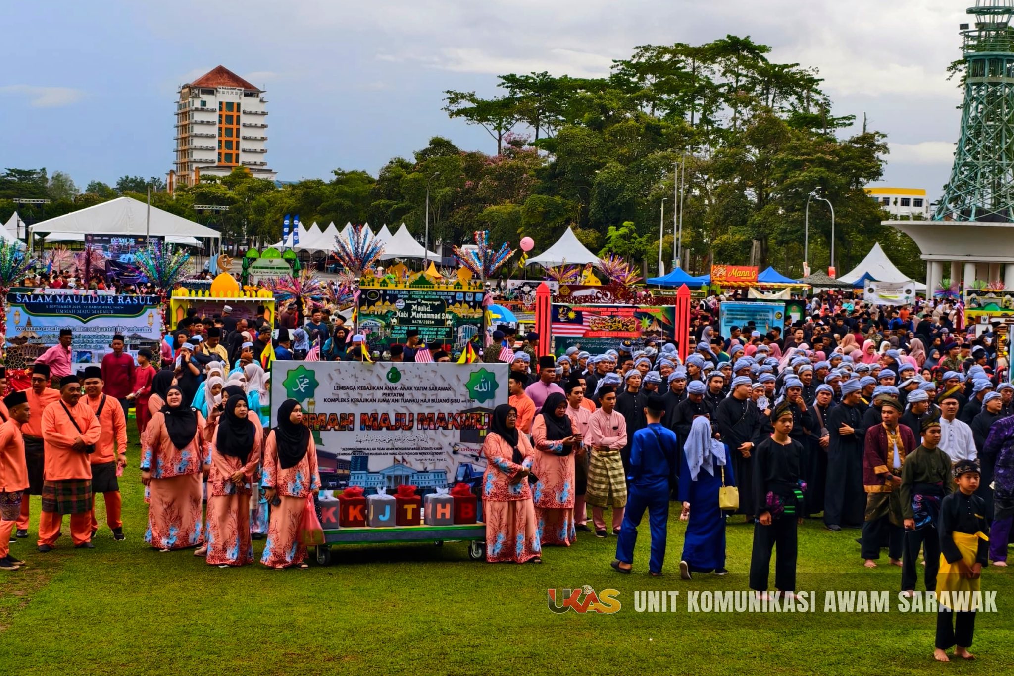 Majlis penuh warna-warni itu bukan sahaja memeriahkan sambutan Maulidur Rasul di Sibu, malah memperlihatkan semangat kebersamaan pelbagai lapisan masyarakat dalam memperingati kelahiran junjungan besar Nabi Muhammad SAW.-EDISI UKAS