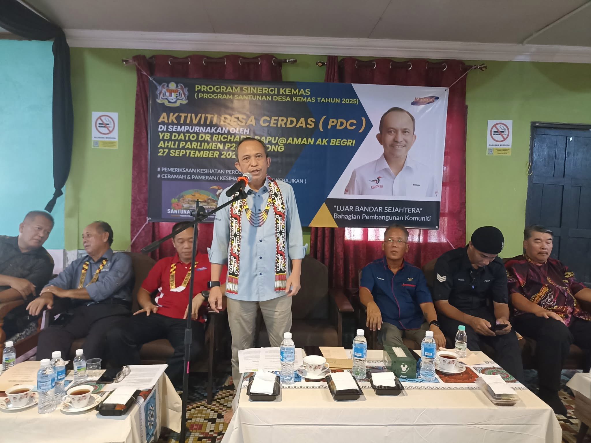 “Kitai di Sarawak chukup betuah laban ngembuan Premier Sarawak, Datuk Patinggi Tan Sri (Dr) Abang Abdul Rahman Zohari Tun Datuk Abang Openg lalu di Betong, kitai bisi Sapit Premier Sarawak, Datuk Amar Douglas Uggah Embas ti landik merambu sereta nyungkak penatai pemisi nengeri,” ku iya lebuh bejadi Program ‘Sinergi KEMAS: Santunan Desa KEMAS 2025 (Program Desa Cerdas)’ di Rumah Chendang Guang, Penunus, ditu, empai lama.
