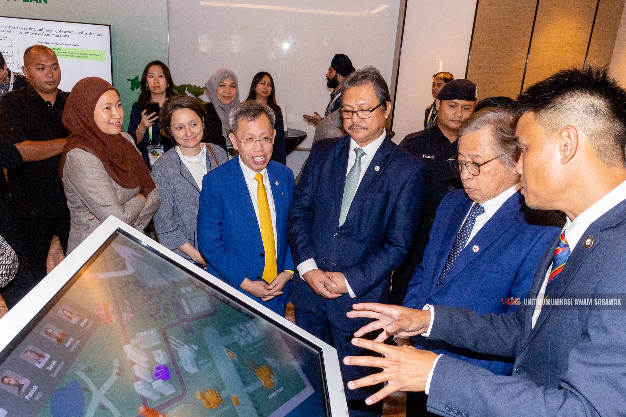 Sama datai, Sapit Premier Sarawak, Datuk Amar Prof. Dr. Sim Kui Hian, Menteri Pemansang Indu, Nembiak Mit enggau Pengelantang Komuniti, Dato Sri Fatimah Abdullah, Menteri Pengangkut Sarawak, Dato Sri Lee Kim Shin, Sapit Menteri Dagang Temuai Sarawak, Datuk Sebastian Ting Chiew Yew, Sapit Menteri Pengangkut Sarawak (Sungai enggau Tasik) Dato Henry Harry Jinep, Duta Besai Brazil ke Malaysia, Daniella Ortega sereta temuai dipebasa ke bukai.