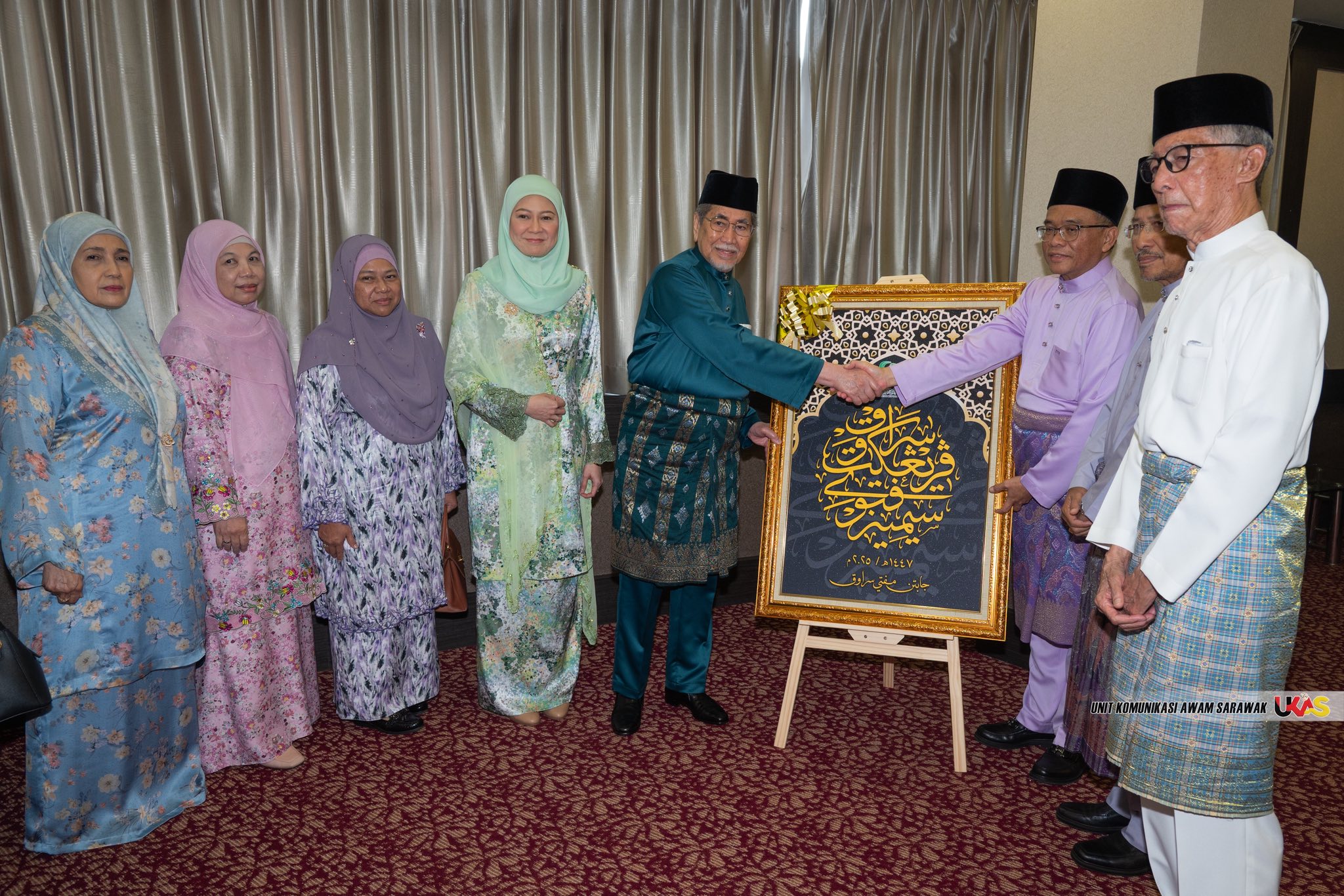 Turut hadir isteri kepada TYT Sarawak, Toh Puan Datuk Patinggi Fauziah Moh Sanusi, Mufti Sarawak Datu Kipli Yassin, Yang Dipertua Majlis Islam Sarawak (MIS) Datuk Misnu Taha, Mufti Terengganu Datuk Dr. Mohamad Sabri Haron, Mufti Negeri Sembilan Prof. Madya Dato’ Dr. Faudzinaim Badaruddin serta tetamu lain.-EDISI UKAS