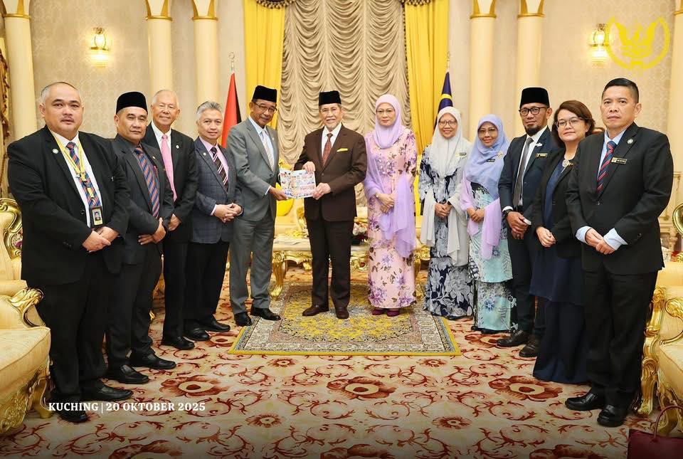 古晋:砂拉越元首敦丕显斯里旺朱乃迪博士于本周一在砂元首府接见2025年古晋河滨砂拉越赛船盛会(Sarawak-Regatta Kuching Waterfront 2025)筹委会代表团。