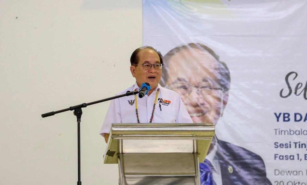 Datuk Amar Douglas Uggah ngarap projek nya ulih ditembuka nitih langgur ke udah ditetap .-EDISI UKAS