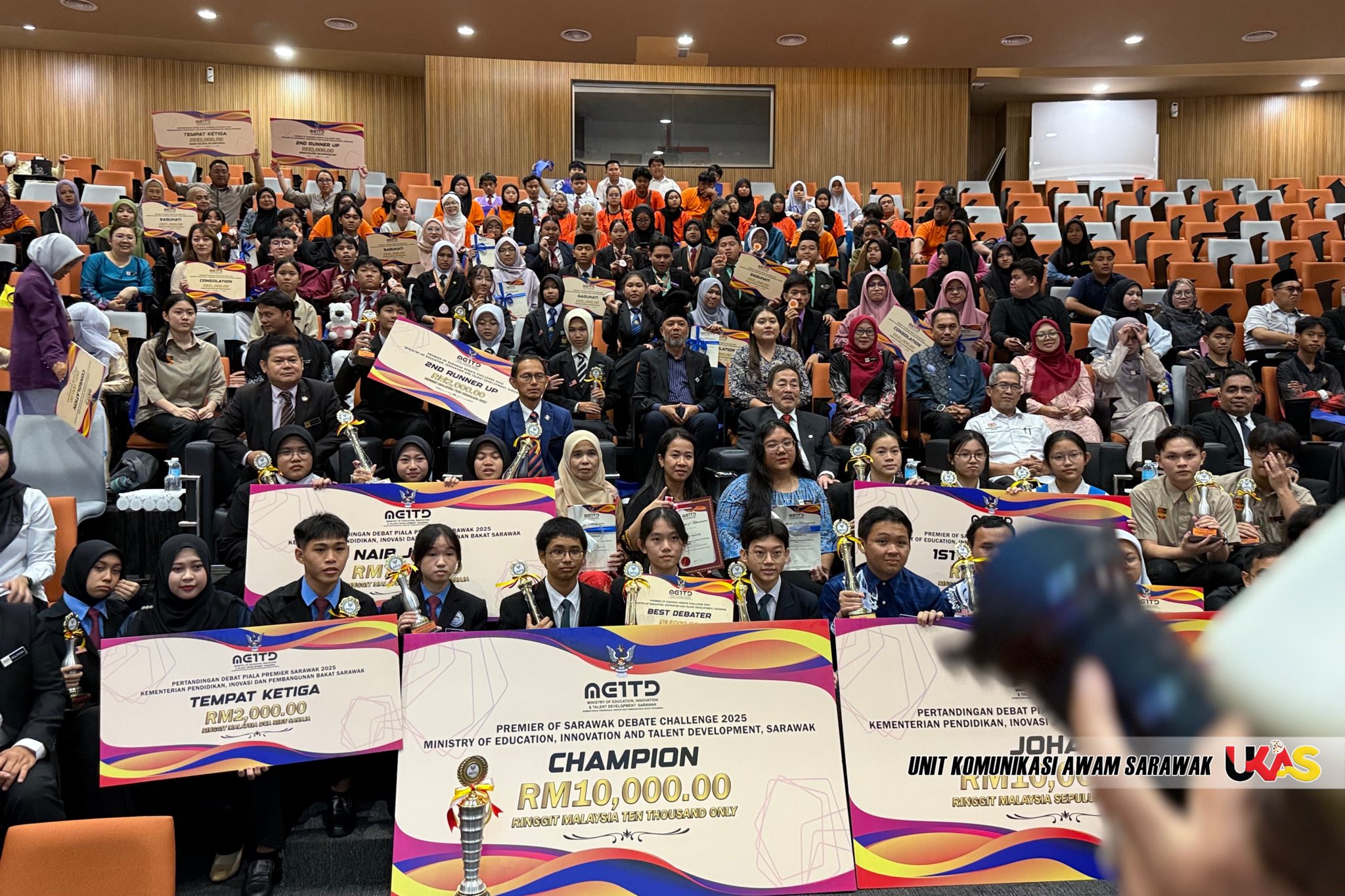 KUCHING: The Premier Debate Challenge ended on a high note as outstanding young debaters from across Sarawak were recognised for their talent and confidence during the prize presentation ceremony officiated by Minister for Education, Innovation and Talent Development (MEITD) Sarawak, Dato Sri Roland Sagah Wee Inn.