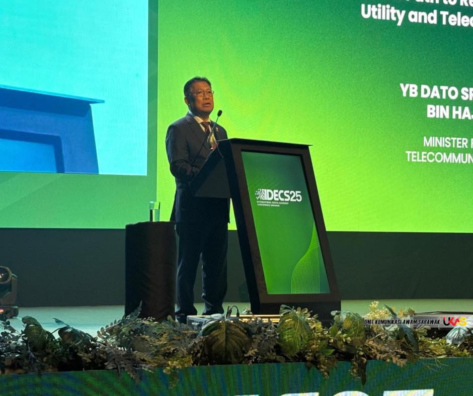 Iya madah munyi nya nengah pejuluk ‘Ethical AI and the Green Digital Economy: Sarawak’s Path to Regional Leadership in Utility and Telecommunication’serimbai Konferens Ekonomi Digital Antarabansa Sarawak 2025 (IDECS25) ba Palan Konvensyen Borneo Kuching (BCCK), ditu kena Hari Empat.