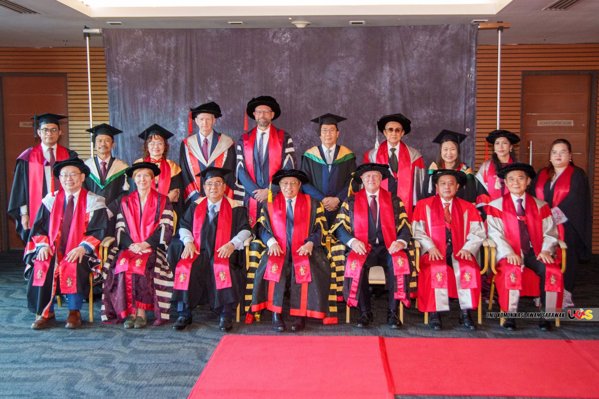 Premier Sarawak merangkap Pro Canselor Datuk Patinggi Tan Sri (Dr) Abang Abdul Rahman Zohari Tun Datuk Abang Openg menyempurnakan penganugerahan kepada graduan yang dipengerusikan oleh Canselor Swinburne University of Technology, Profesor John Pollaers OAM.