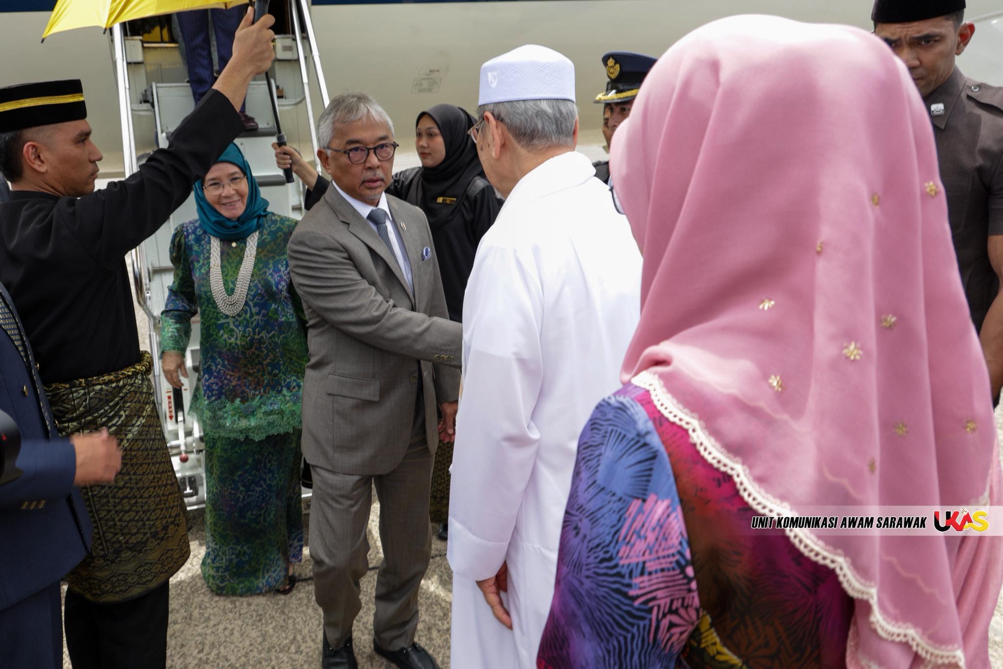 同时到场迎驾的还包括砂拉越副总理拿督阿玛沈桂贤医生、砂拉越政府秘书拿督阿玛莫哈末阿布巴卡马祖基、砂拉越妇女、儿童与社区和谐发展部副部长拿督莫哈末拉兹西丹及多位嘉宾。