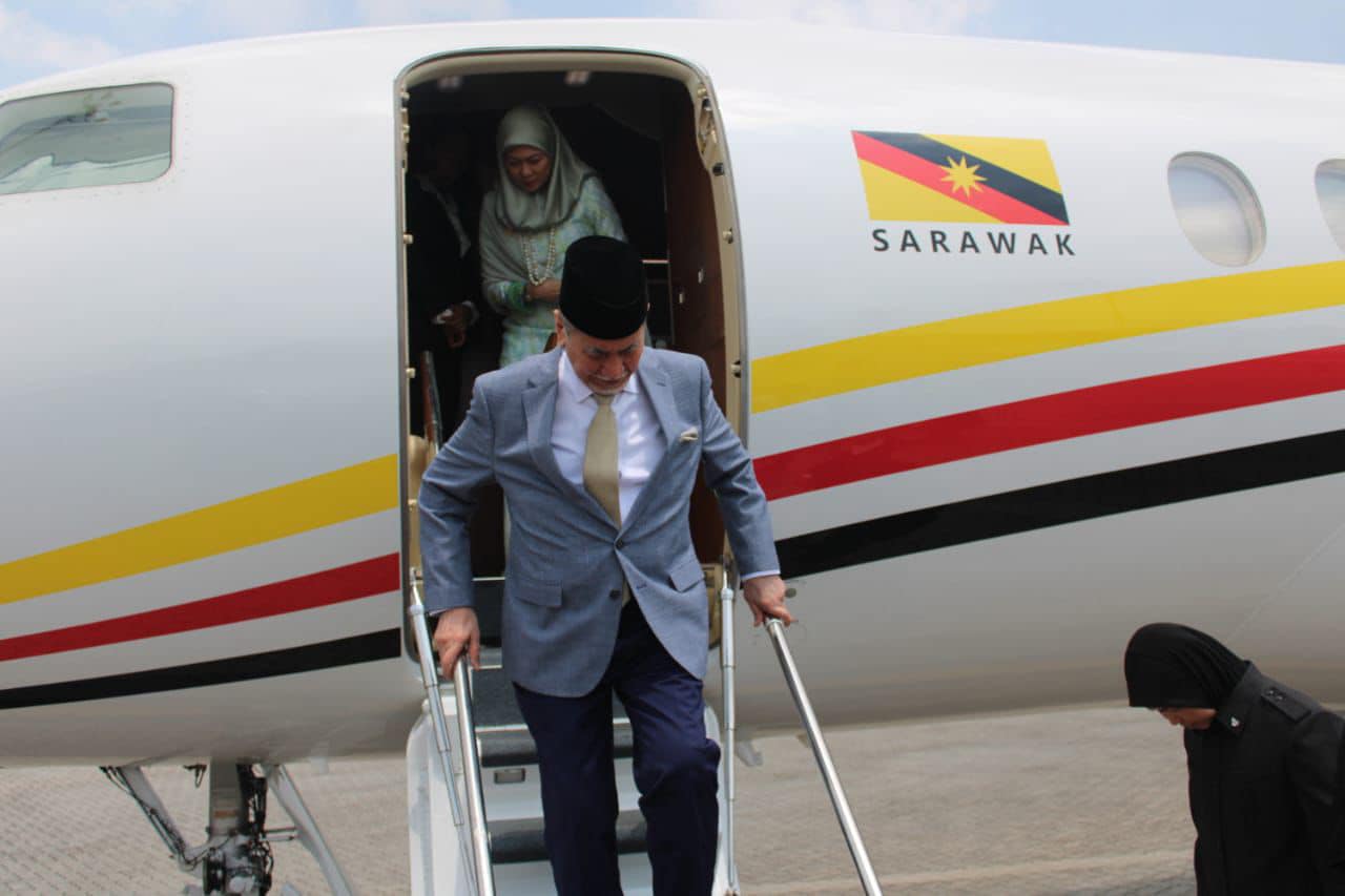 Iya ti disempulang bini, Toh Puan Fauziah Mohd Sanusi datai ba Padang Bilun Sultan Abdul Aziz Shah urung pukul 12.16 ngalih hari ngena penerebai bilun khas ari Kuching.