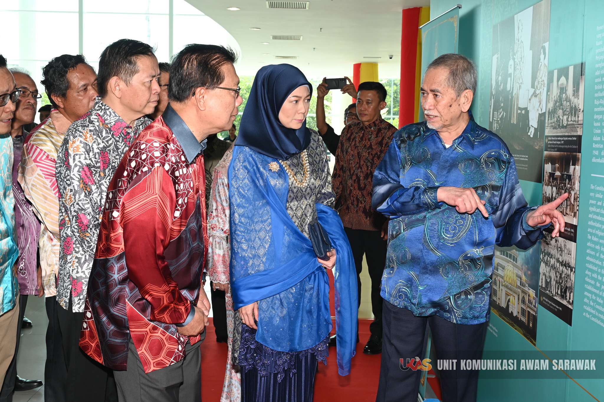 Sama bisi datai maya nya, Premier Sarawak, Datuk Patinggi Tan Sri (Dr) Abang Abdul Rahman Zohari Tun Datuk Abang Openg enggau bini, Puan Sri Datuk Amar Juma’ani Tun Tuanku Bujang, Sapit Premier Sarawak Datuk Amar Prof Dr Sim Kui Hian, Pemangku Sekretari Perintah Sarawak Datu Dr Muhammad Abdullah Zaidel, bala Sapit Menteri Sarawak sereta temuai dipebasa ke bukai.-EDISI UKAS