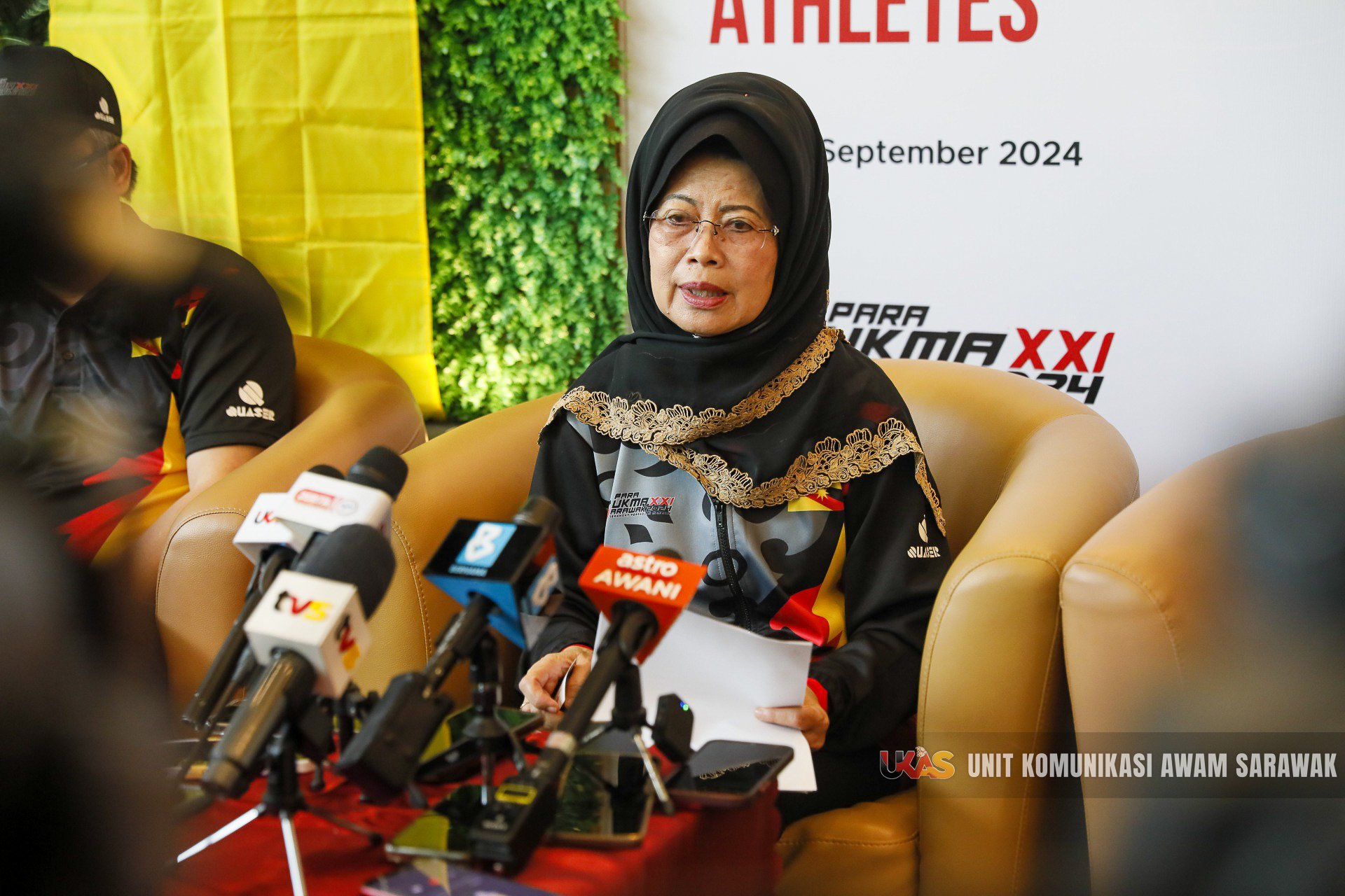 Sama datai Sapit Menteri Pemansang Pengelantang Komuniti Sarawak ke nyadi Chef de Mission (CDM) Kontinjen Para Sarawak Datuk Mohammad Razi Sitam, Sapit Menteri Pemansang Indu enggau Nembiak Mit Sarawak Datuk Rosey Yunus, Sekretari Mendam Opis Menteri Pemansang Indu, Nembiak Mit enggau Pengelantang Komuniti Datu Felicia Tan Ya Hua enggau Tuai Pegawai Eksekutif Rapid Bus Sdn Bhd Muhammad Yasutin Sallij. -EDISI UKAS