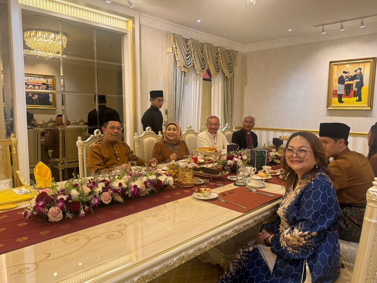 YBhg. Dato’ Georgina Apphia Ngau bersama Ketua-Ketua Agama, wakil-wakil agama lain serta warga UNIFOR telah menghadiri Majlis Rumah Terbuka Hari Raya Aidilfitri yang dianjurkan oleh Tuan Yang Terutama Yang di-Pertua Negeri Sarawak, Tun Pehin Sri Dr. Haji Wan Junaidi bin Tuanku Jaafar, bersama isteri, Yang Amat Berbahagia Toh Puan Datuk Patinggi Fauziah binti Mohd Sanusi, di Astana Negeri Sarawak.